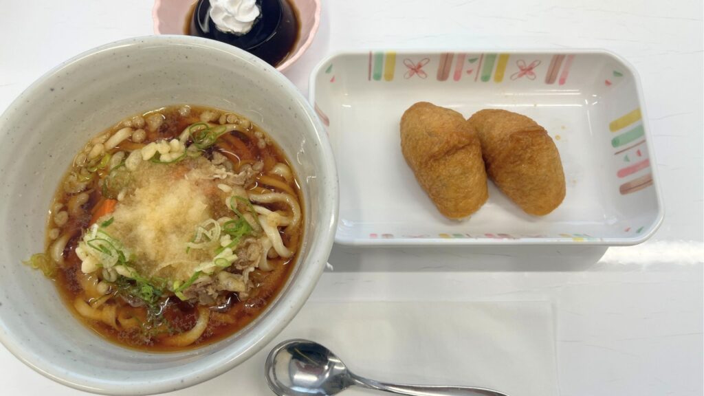 8/28(木)のお昼ごはんは手打ちうどんといなり寿司でした。